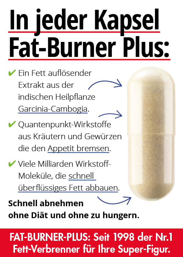 The new Turbo Fat Burner Plus (with 40% more effect) now works twice, thanks to the fat-dissolving extract from the Indian medicinal plant Garcinia Cambogia and the globally unique quantum punk active ingredients, which also Curb your appetite. Turbo Fat Burner Plus supports the reduction of diet-related excess weight. With many billions of active ingredient molecules, it releases your fat from the fat cells and burns it as energy. You lose weight sensibly and tone your figure. 1-2 capsules 3 times a day work really well.